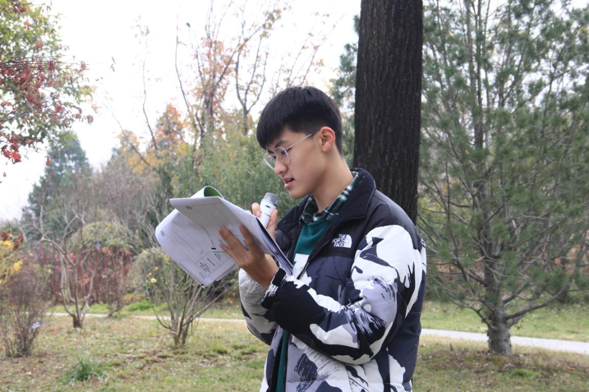 接下来,带队老师带领学生们来到园区内,详细讲解调查内容及工具使用方法后,大家以小组为单位实地取样调查,组员之间相互协作、配合默契,高效率完成了调查任务,通过实地操作,真正掌握了树种调查方法。