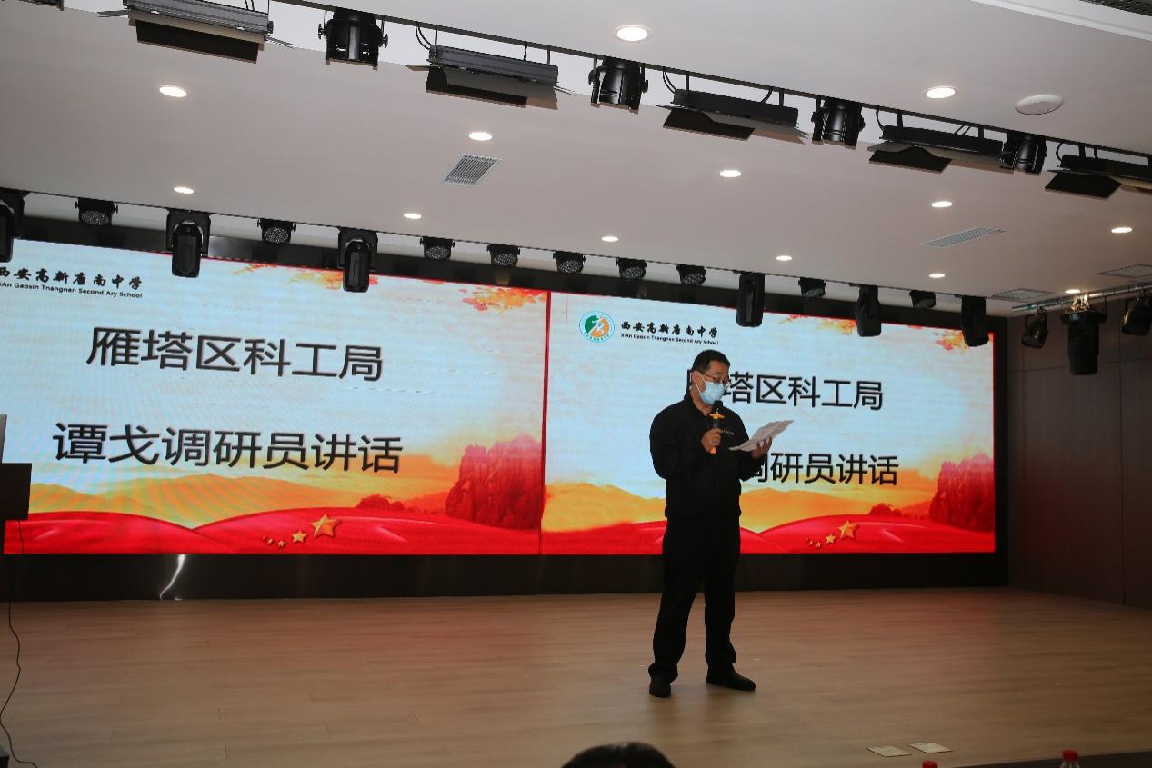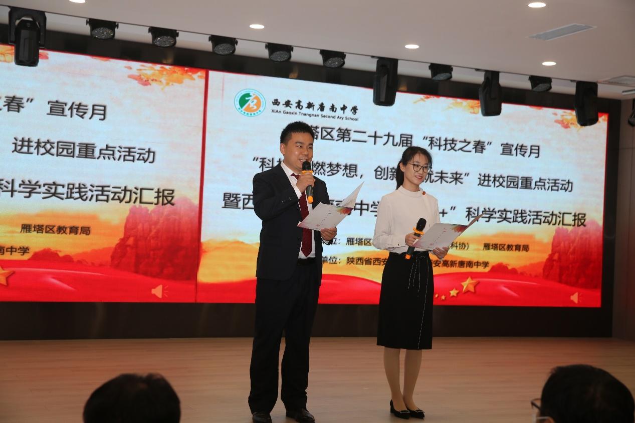 2021年4月1日下午,以“科技点燃梦想,创新成就未来”为主题的雁塔区第二十九届“科技之春”宣传月重点活动在西安高新唐南中学举行。此次活动由雁塔区科技和工业信息化局(科协)与雁塔区教育局主办,陕西省西安植物园与西安高新唐南中学承办。西安市雁塔区科工局调研员谭戈、雁塔区教育局党委委员张心如、陕西省西安植物园总园艺师马延康、科研中心副主任陈智坤、运营中心副主任谢斌等相关负责人和学校领导及师生代表参加了活动。