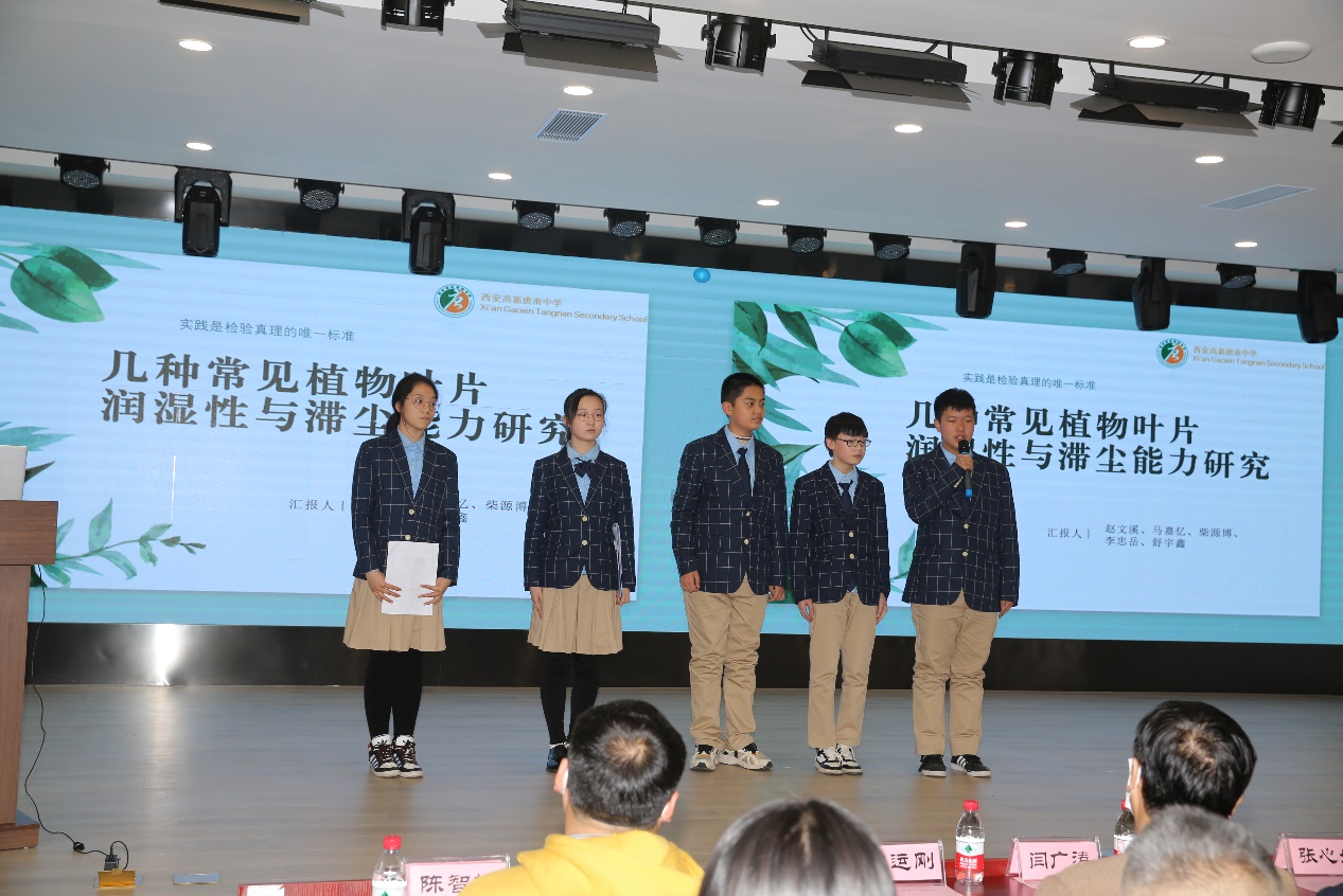 本次活动紧密围绕“科技、创新、发展、未来”主题开展。前期高新唐南中学及其名校+学校南苑中学和北大新世纪中学在陕西省西安植物园开展了两个户外的科学探究课题,此次活动在高新唐南中学现场汇报课题开展情况,同时陕西省西安植物园科研中心副主任、陕西省科学院土壤资源与生物应用重点实验室主任助理陈智坤博士为参会学生带来了精彩的《微塑料》讲座。