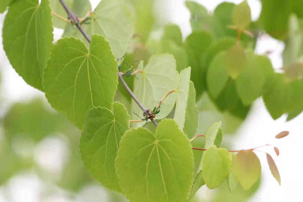 西安植物园于上世纪90年代就对连香树进行了引种驯化,于2021年春季在珍稀濒危园内开展了定植工作,经过一段时间的生长,连香树已在园区内开花,但连香树的花并不如珙桐那样鲜艳夺目,因此需要仔细观察。