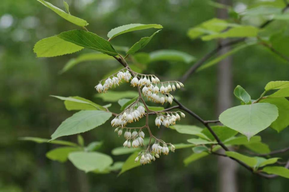 园区工作人员在定植和管护过程中,发现部分珍稀濒危植物已进入花期,正在绽放,具体包括珙桐,连香树及白辛树等。