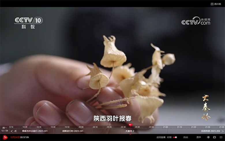 由中央广播电视总台出品、中国国际电视总公司鹿鸣影业承制的4集精品纪录片《大秦岭》于2023年12月3日至12月6日每晚20:10在CCTV-10科教频道播出,该纪录片第二集对陕西省西安植物园生物多样性保护优秀案例——陕西羽叶报春?;び肟沙中媒辛思斜ǖ篮托?。