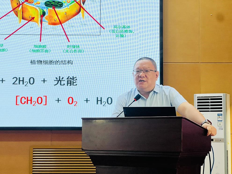 活动现场,来自西北大学生命科学学院赵宇玮教授和刘文哲教授为参加活动的高新一中初级中学、陕西师范大学附属中学的100余名师生分别带来了题为《作物驯化与人类生活》、《植物的爱情》主题报告,还就科学践行“大食物观”和开展高质量科普工作进行了现场交流。