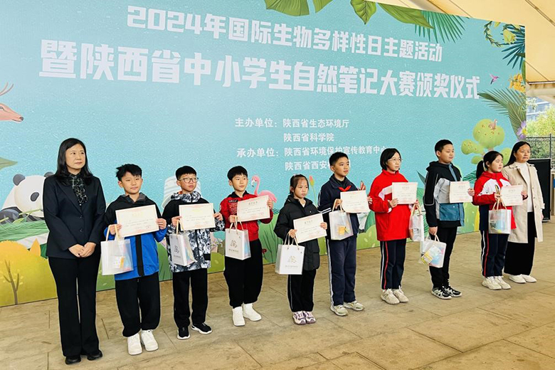 2024年生物多样性主题为“生物多样性 你我共参与”,10月20日上午,2024年国际生物多样性日主题活动暨陕西省中小学生自然笔记大赛颁奖仪式在陕西省西安植物园举行,陕西省生态环境厅自然生态?;ごΥΤっ衔榔?、陕西省生态环境厅教宣处处长葛晗梅、陕西省西安植物园副主任韩桂军等出席颁奖仪式。