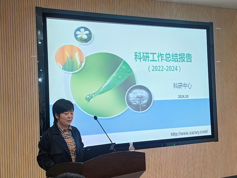 科研中心副主任李倩从科研项目、成果产出、平台建设等九个方面对我园2022-2024年度的科研进展情况进行了总结分析,并剖析提出目前存在的主要问题。财务资产科主任张力霞对科研经费管理常见问题进行了解读。