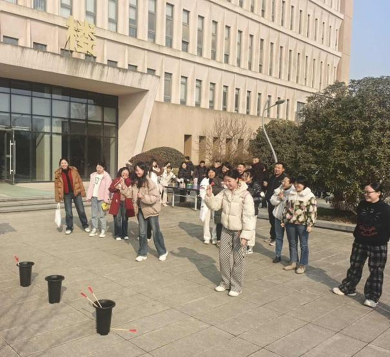 当日午餐后,新区综合实验楼南侧的文体活动区域热闹非凡。投壶活动中,参与者全神贯注、屏气投箭,现场喝彩阵阵;幸运滚滚乐游戏里,职工们积极尝试,欢笑声此起彼伏。这些活动不仅为职工带来欢乐,更促进了相互间的沟通与交流,展现出园所职工积极向上、团结友爱的精神风貌。