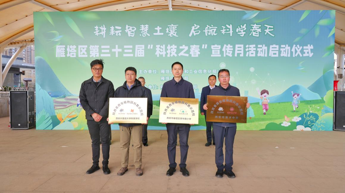 2025年3月18日上午,由雁塔区科技和工业信息化局(科协)、雁塔区教育局联合主办,陕西省西安植物园承办的“耕耘智慧土壤·启航科学春天”主题的雁塔区第33届“科技之春”宣传月活动启动仪式在西安植物园举行。西安市雁塔区政府副区长聂虎、西安市科协科普部部长严超、科工局局长张军、陕西省西安植物园主任岳明、副主任韩桂军、雁塔老科协副会长柏景森等以及来自西安市30所中小学的领导、160名师生以及80名社区工作者代表共同参加了活动。科工局局长张军主持启动仪式。