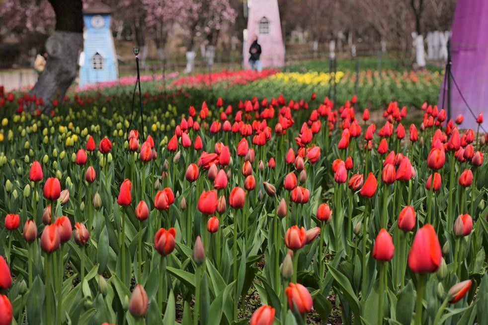 今年花展还将继续推出造型独特的银莲花,其植株低矮,花茎并不高大,每朵花茎的顶端生出一朵花来,远远望去犹如出水的莲花,搭配超长花期,将春日浪漫无限延续。无论是近观其玲珑姿态,还是远望其成片花海,都能感受到大自然的精妙。此外,玉兰的清雅、洋水仙的清新、矮牵牛的俏皮、紫?;ǖ目砂⑻一ǖ难蘩?、樱花和海棠的烂漫……园区内“配角”植物同样不容小觑。它们或点缀小径,或簇拥水畔,与主展区形成层次丰富的春日交响。更有憨态可掬的稻草人、栩栩如生的恐龙雕塑散落园中,为亲子家庭增添趣味互动体验。同时,在4月—5月初还有海棠、牡丹、芍药、杜鹃、绣球等各色花卉也将陆续成为“当家花旦”。为提升游园体验,园区呼吁广大游客文明赏花,禁止踩踏花田、攀折花枝,让美景常驻人间。